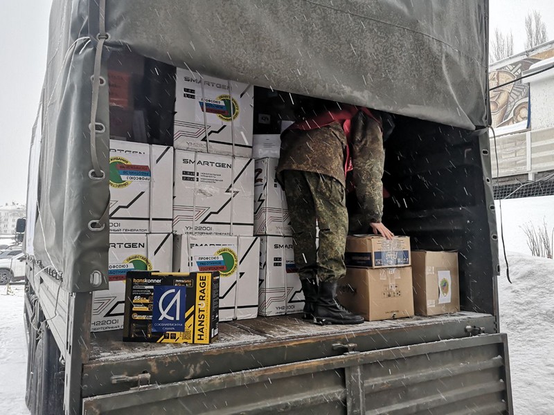 Для наших бойцов собраны генераторы, рации, тепловизоры, строительные инструменты, сети, бензопилы, сварочные аппараты, медикаменты, средства гигиены, а также письма с поздравлениями с Днём Защитника Отечества от детей и ветеранов.